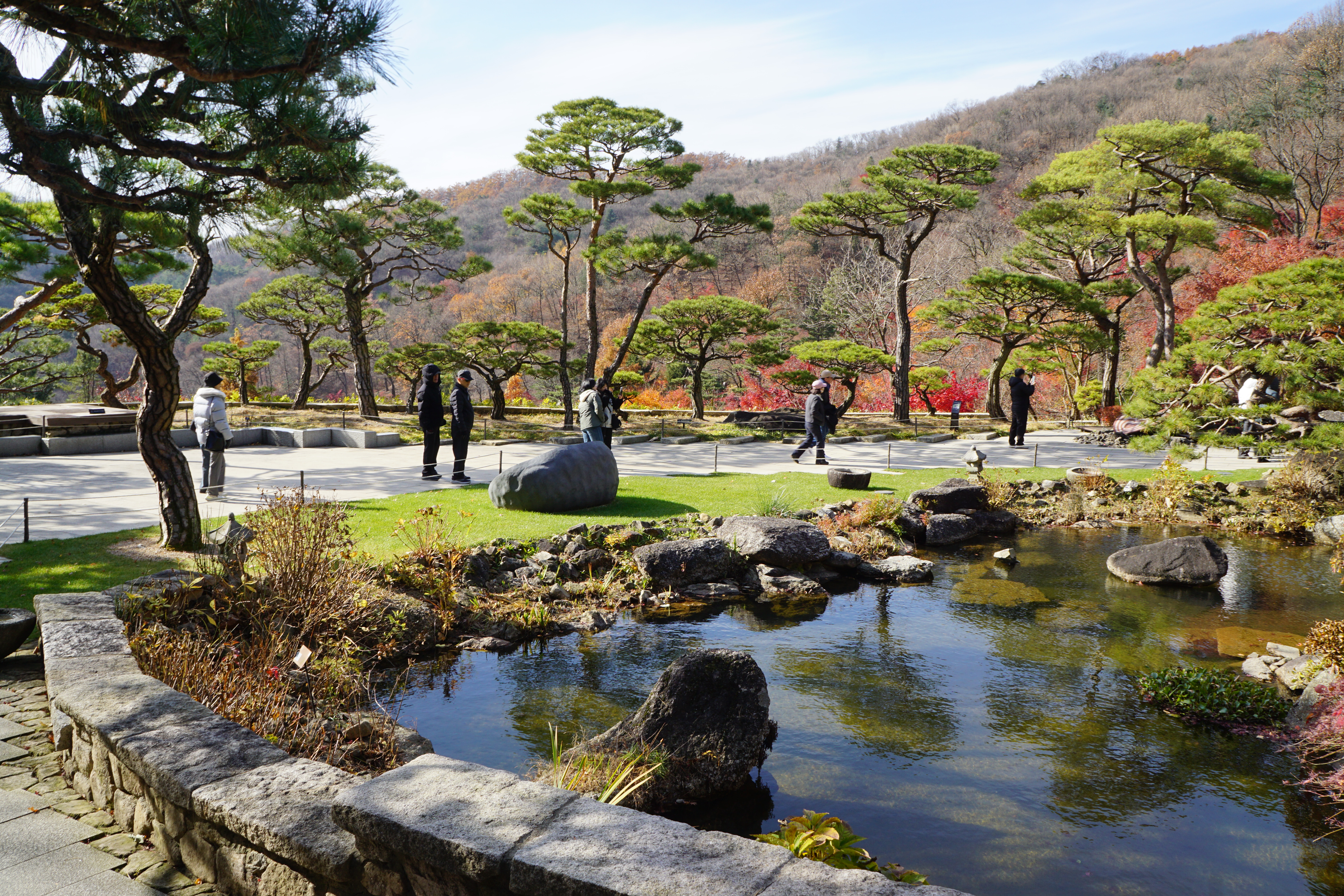 '소나무정원'의 작은 연못과 어우러진 풍경이 편안하면서도 아름답다.
