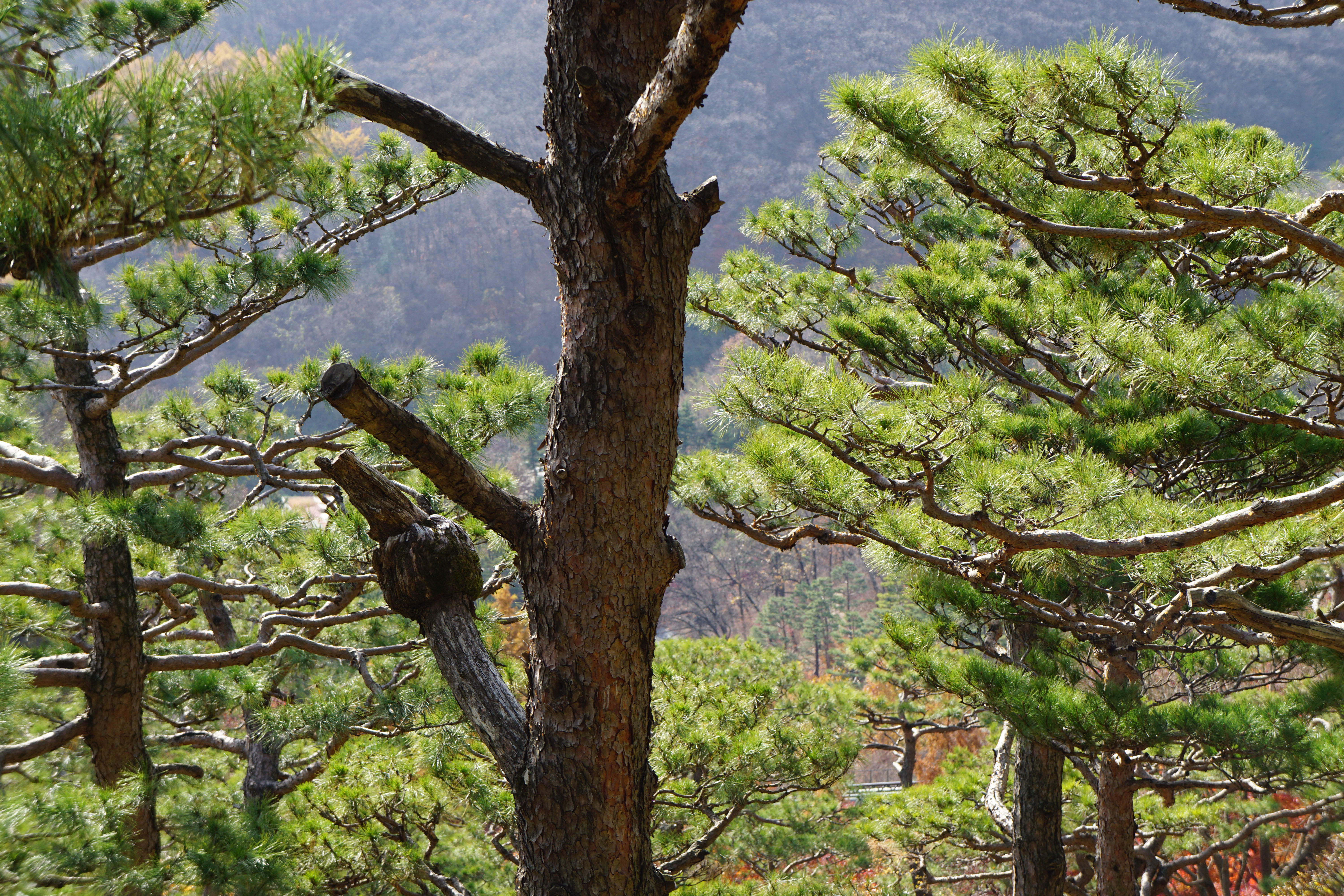 곧은 줄기 보다는 멋스럽게 굽어져야 한다는데 저 소나무는 멀리서 보기에 꼭 바오밥나무 같아 보인다.