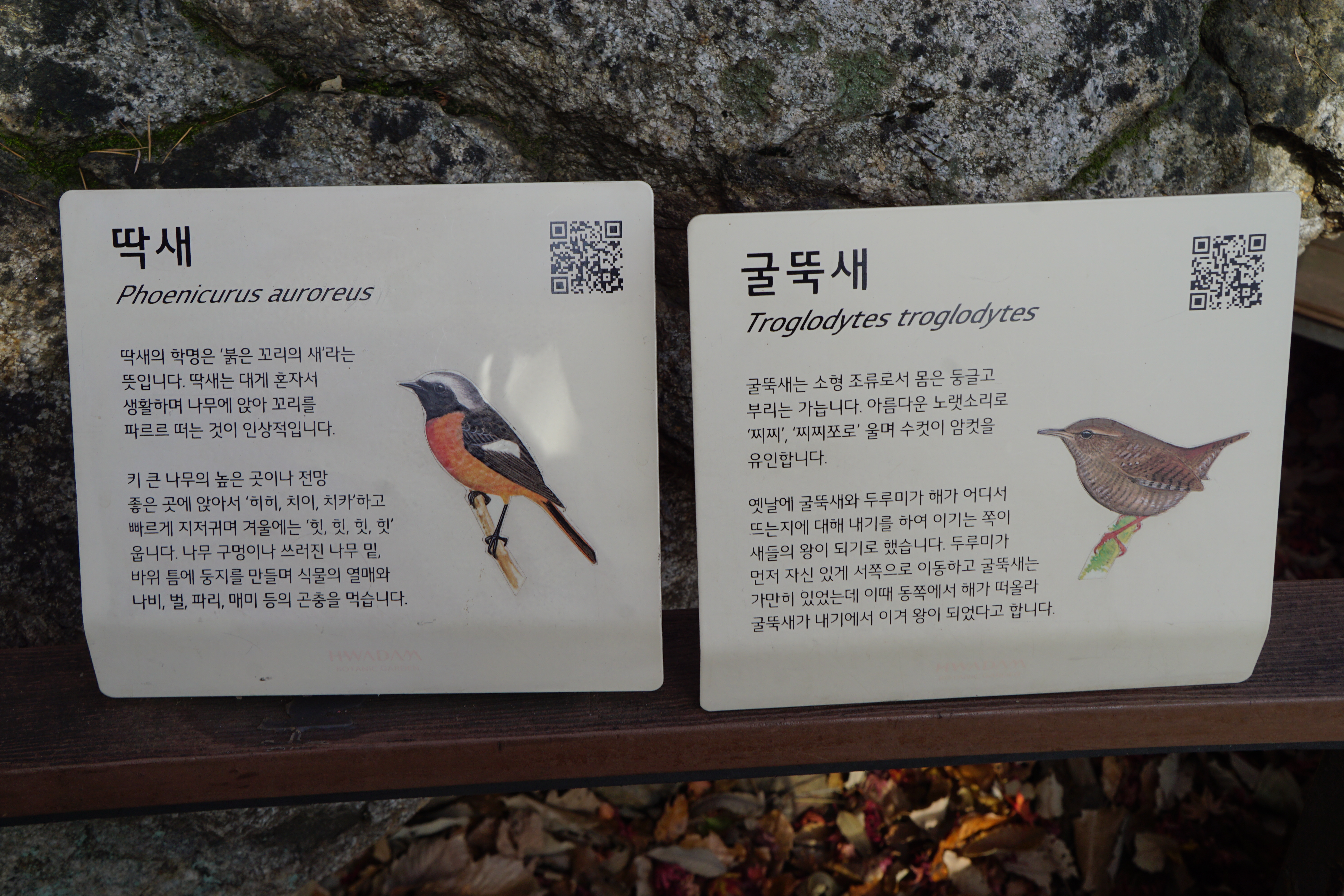 길 옆 안내문이 붙어있는 곳 주변을 잘 살피면 나무 위, 혹은 바위에 숨어있는 다양한 새들을 찾는 재미가 있다.