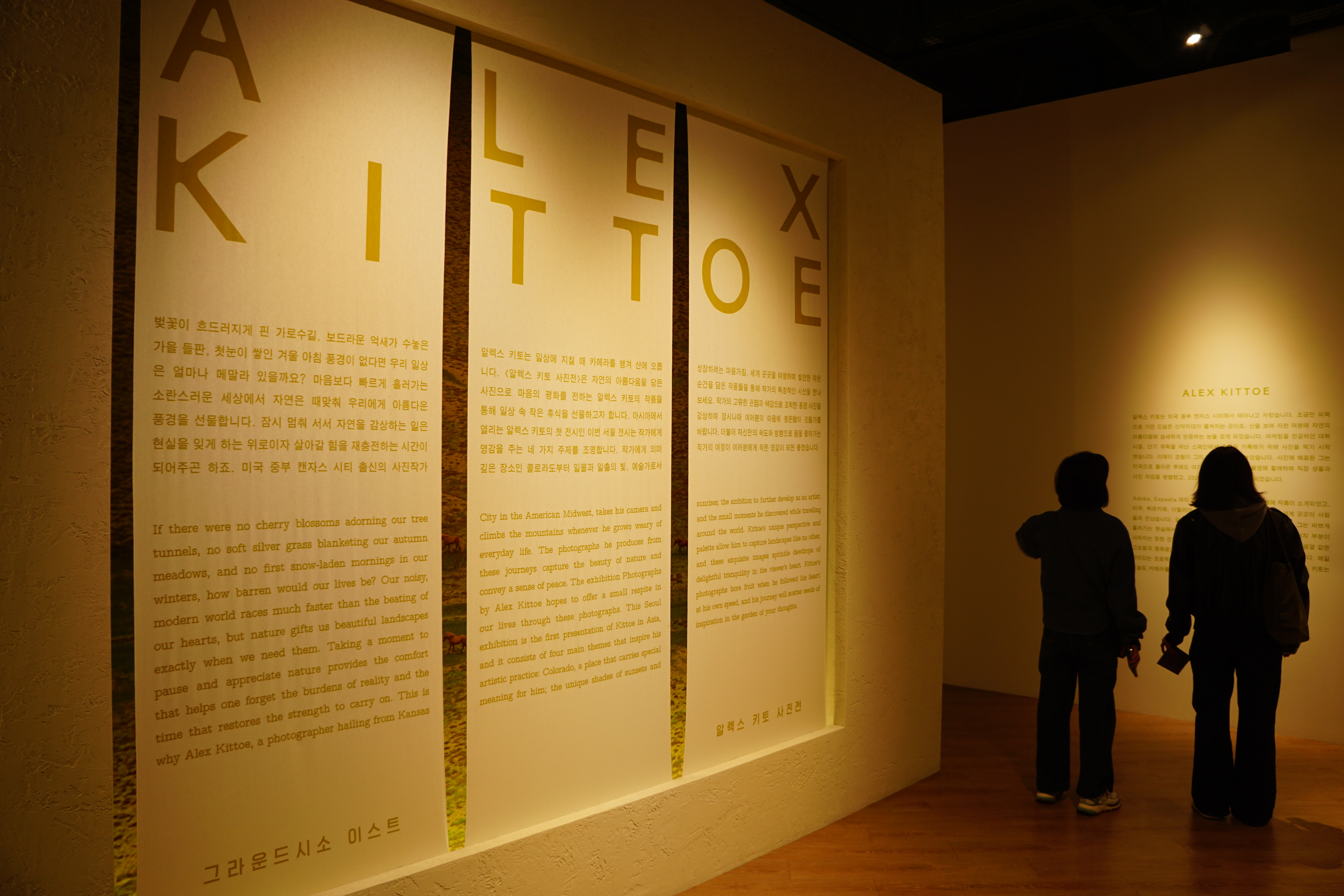 입구가 나란히 있는 두 전시회 중 두번째로 Alex Kittoe 사진전 제2전시장으로 입장한다.