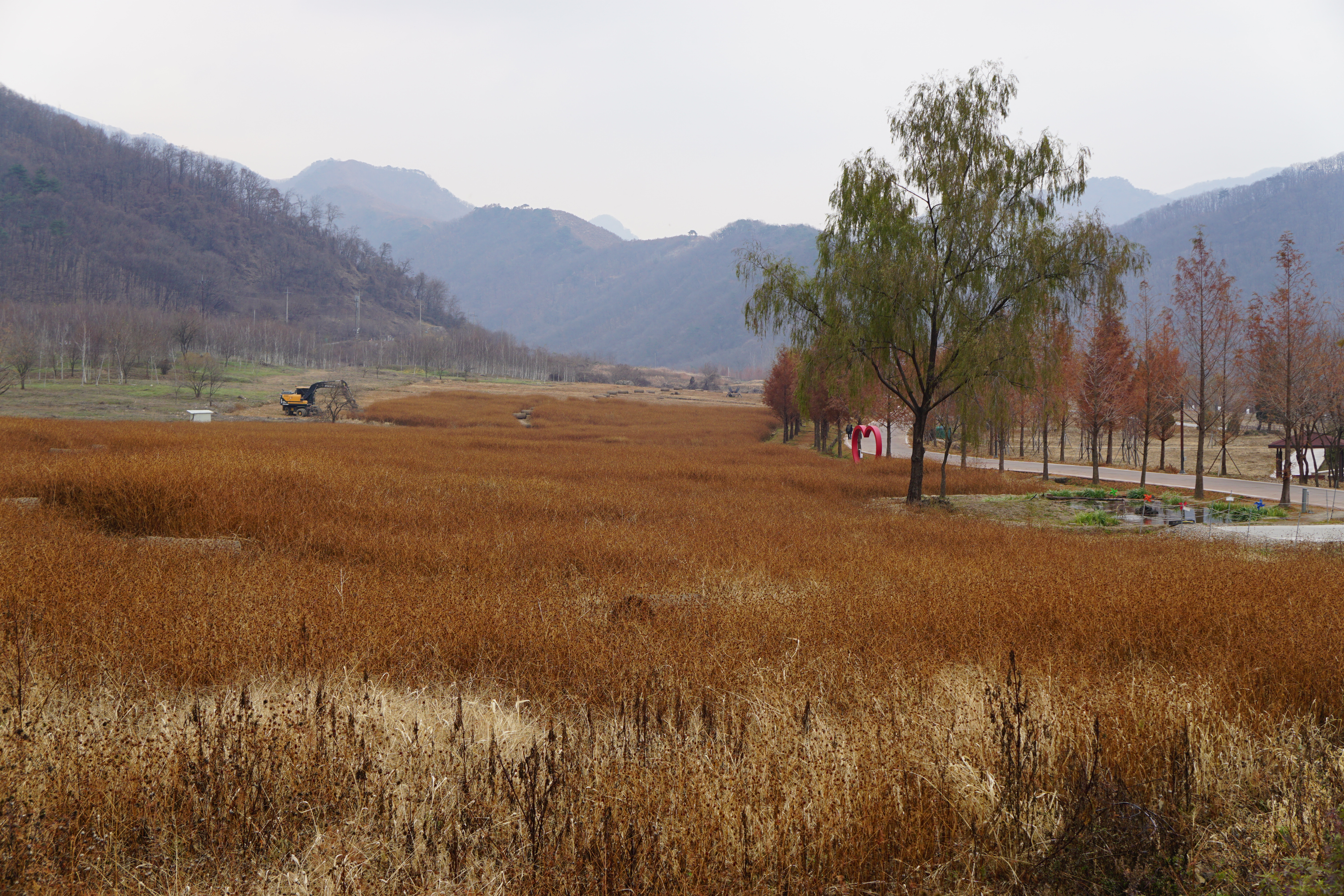 지난 가을 불타는 풍경을 선사했을 황화코스모스 정원은 중장비가 갈아 엎고있는 중이었다.