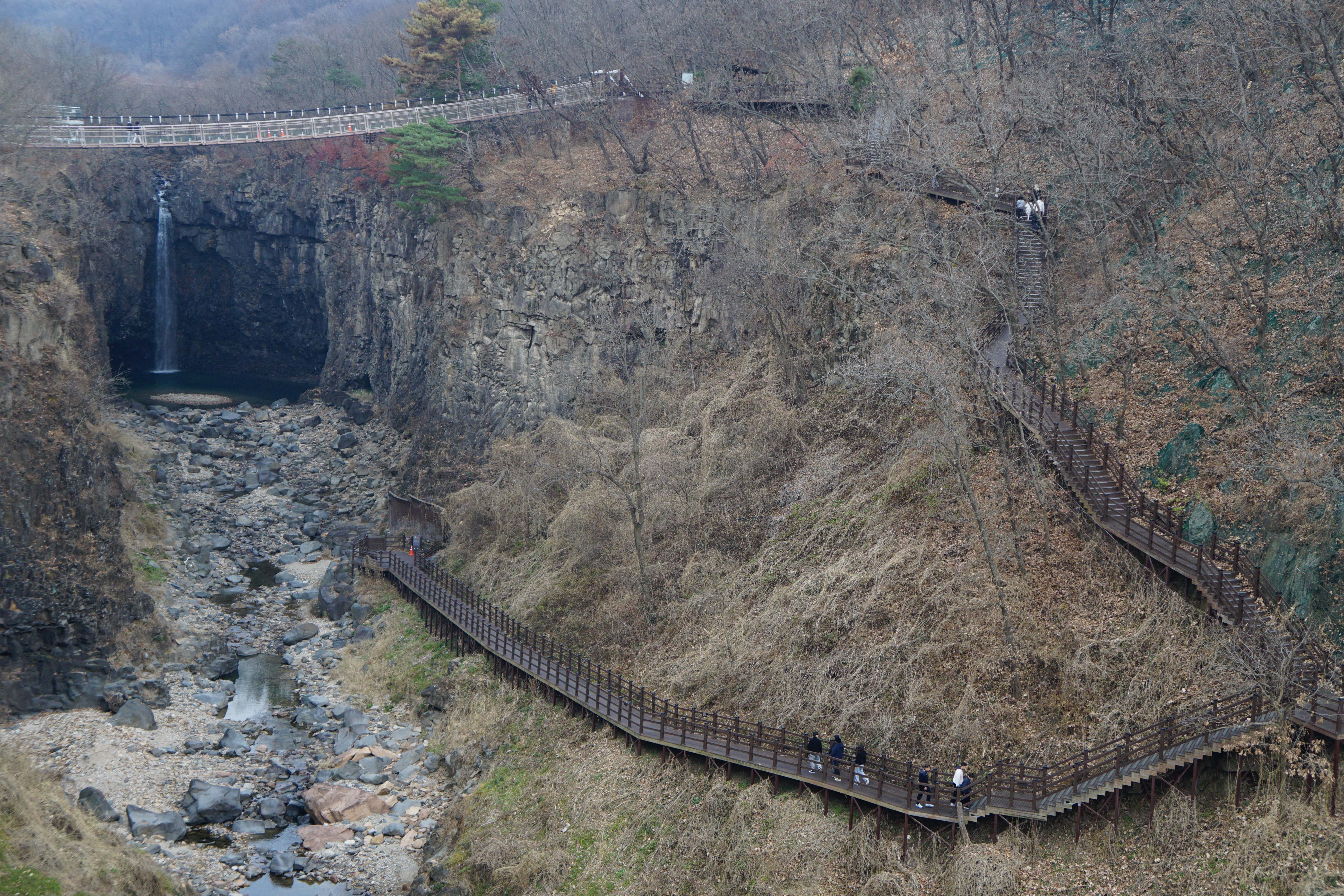 폭포 옆면의 주상절리가 잘 보이는 곳.