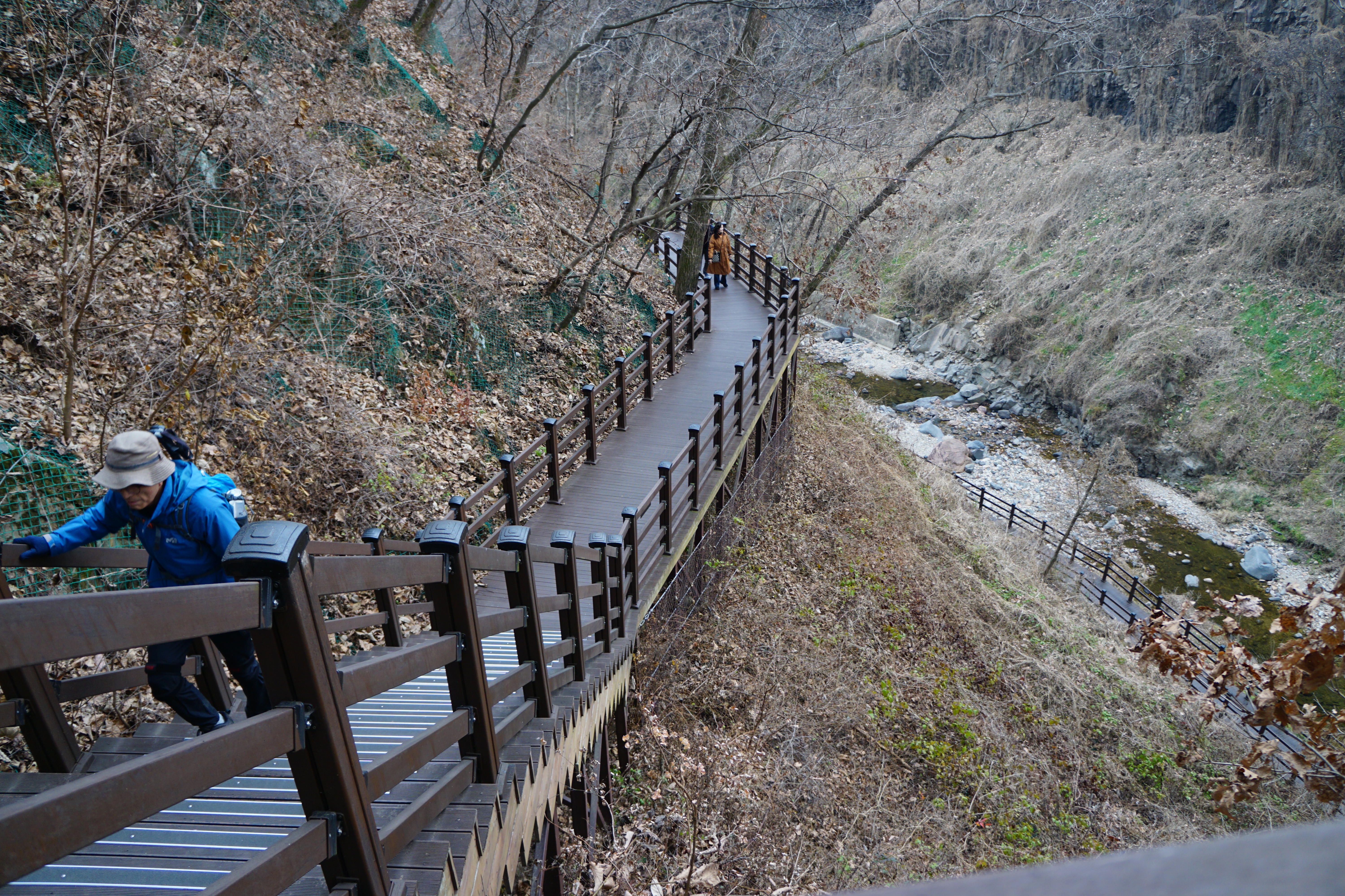 폭포 앞까지 부지런히 내려갔다가 올라와서 이번에는 반대편 폭포둘레길로~