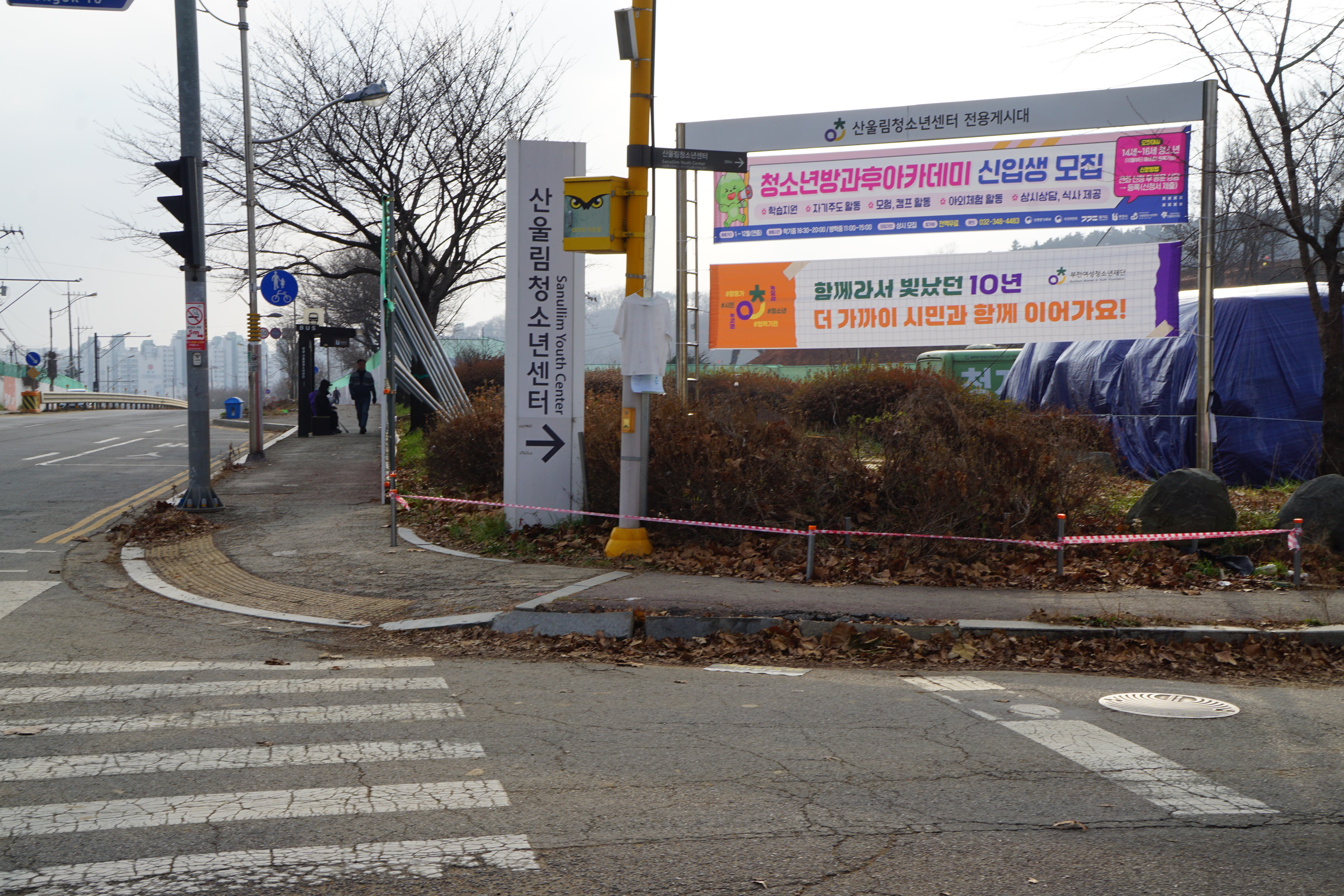 '산울림청소년센터' 진입로는 거대한 건설 공사현장 옆이라 불편하고 위험하고 번잡해 보인다.