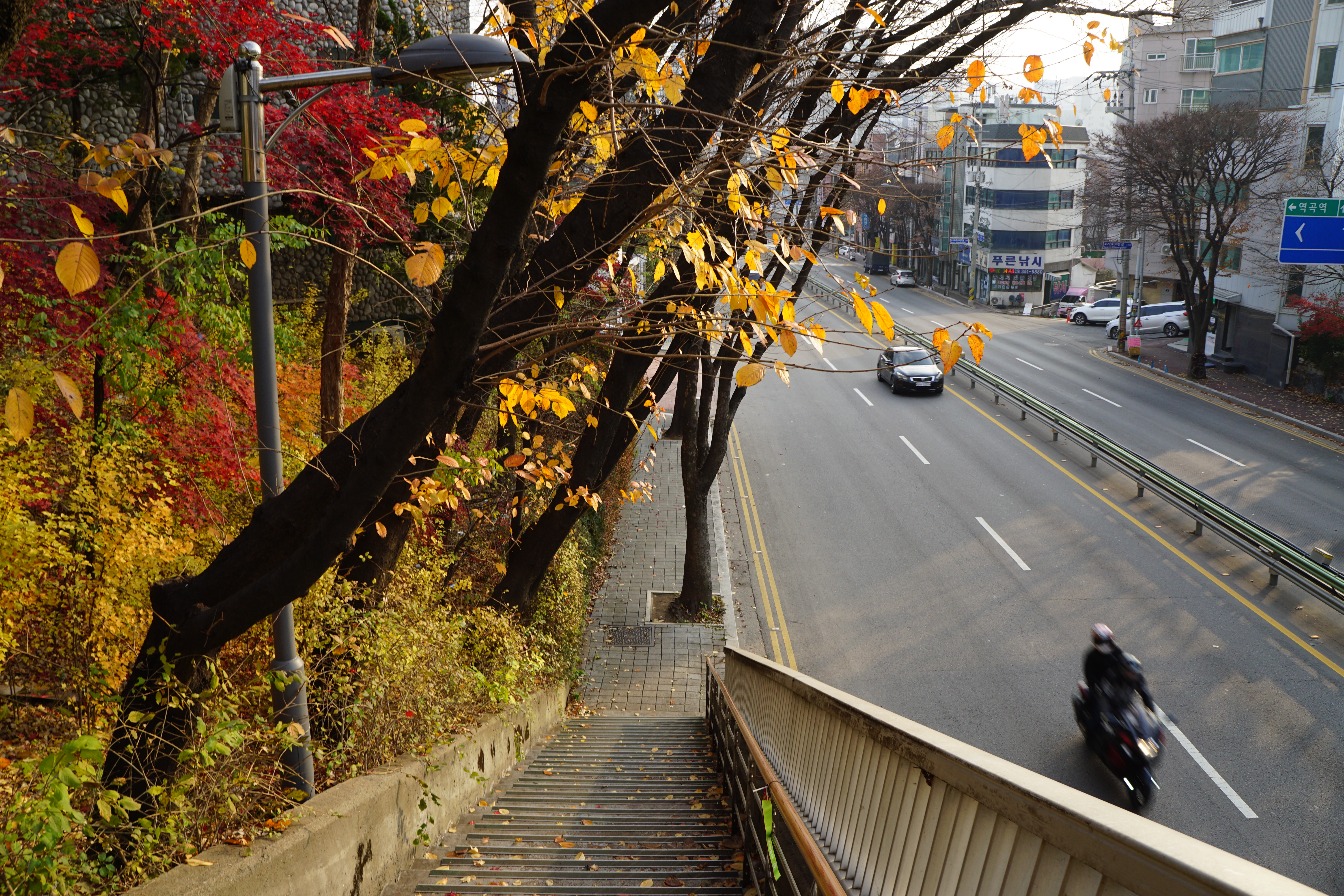 '원미산'에서 가장 아름다운 단풍나무들이 밀집해 있는 지점이라 마악 떨어진 단풍나무 잎이 어찌나 눈길을 끌던지