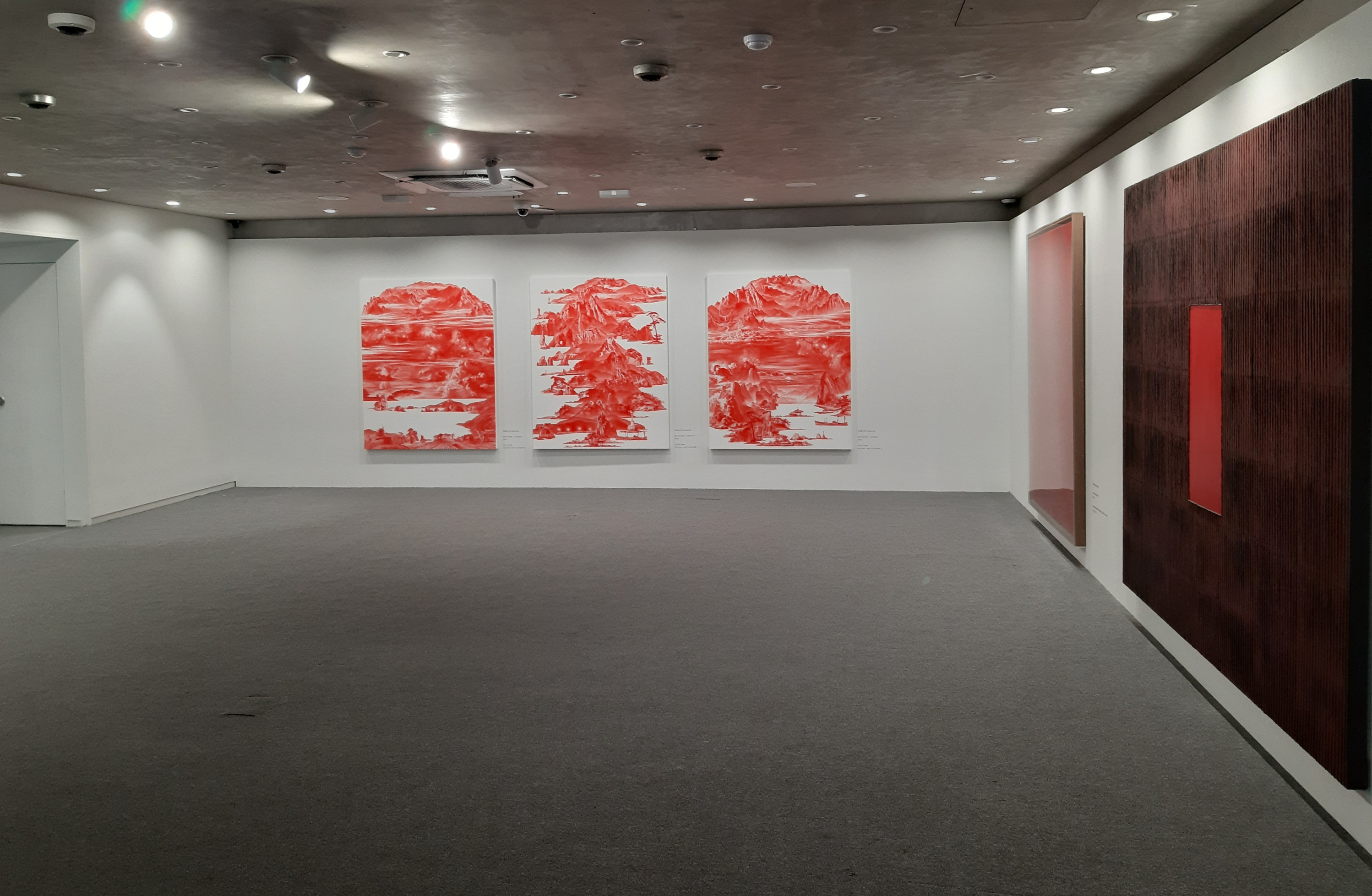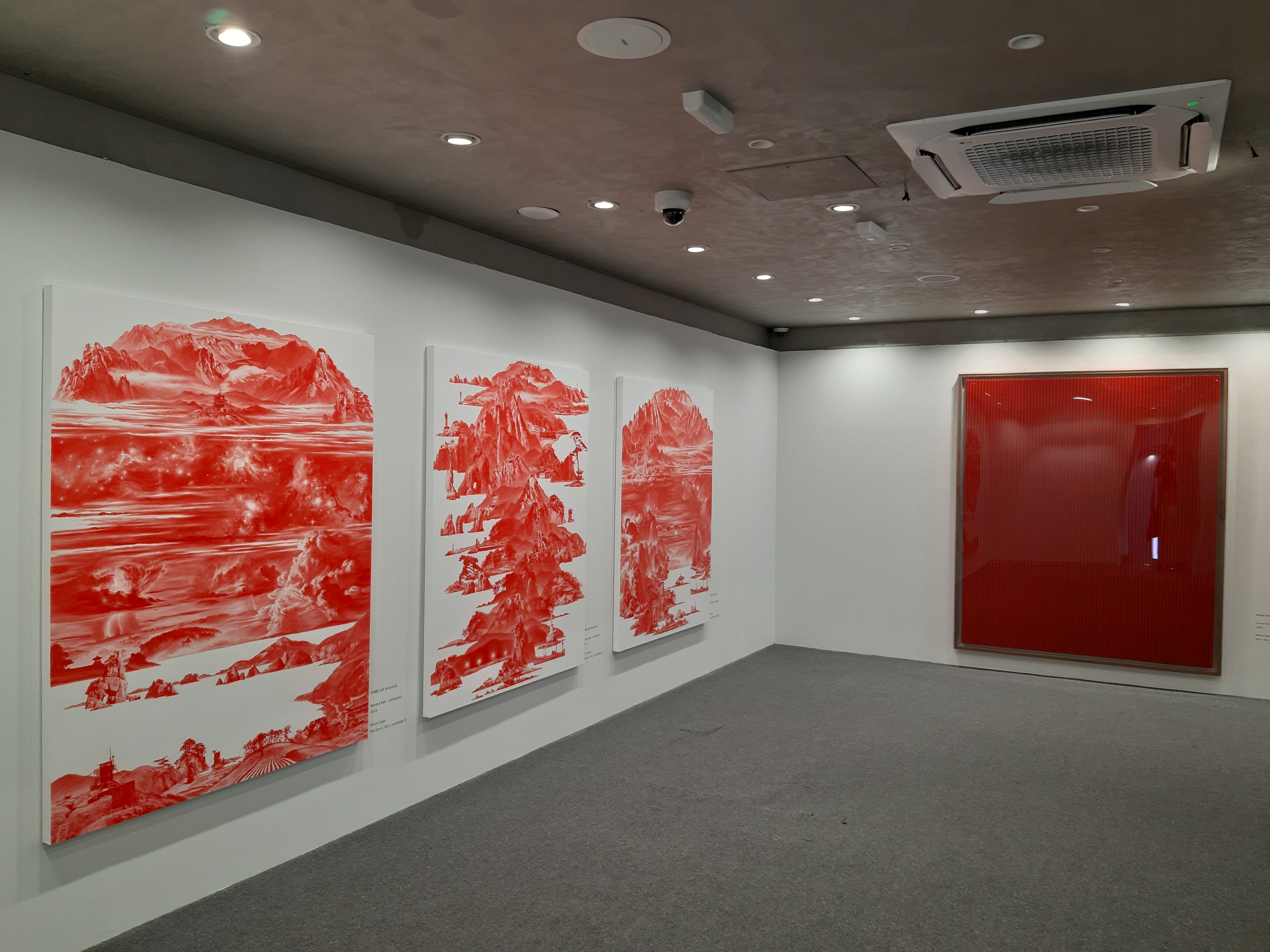 붉은색으로 그린 산수화 같은 느낌으로 굉장히 강렬하게 다가온 작품은,