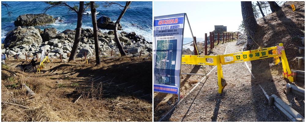 숲길의 나무들이 사라진 그렇게 아름답던 절벽길을 더 이상 걸을 수 없다니...