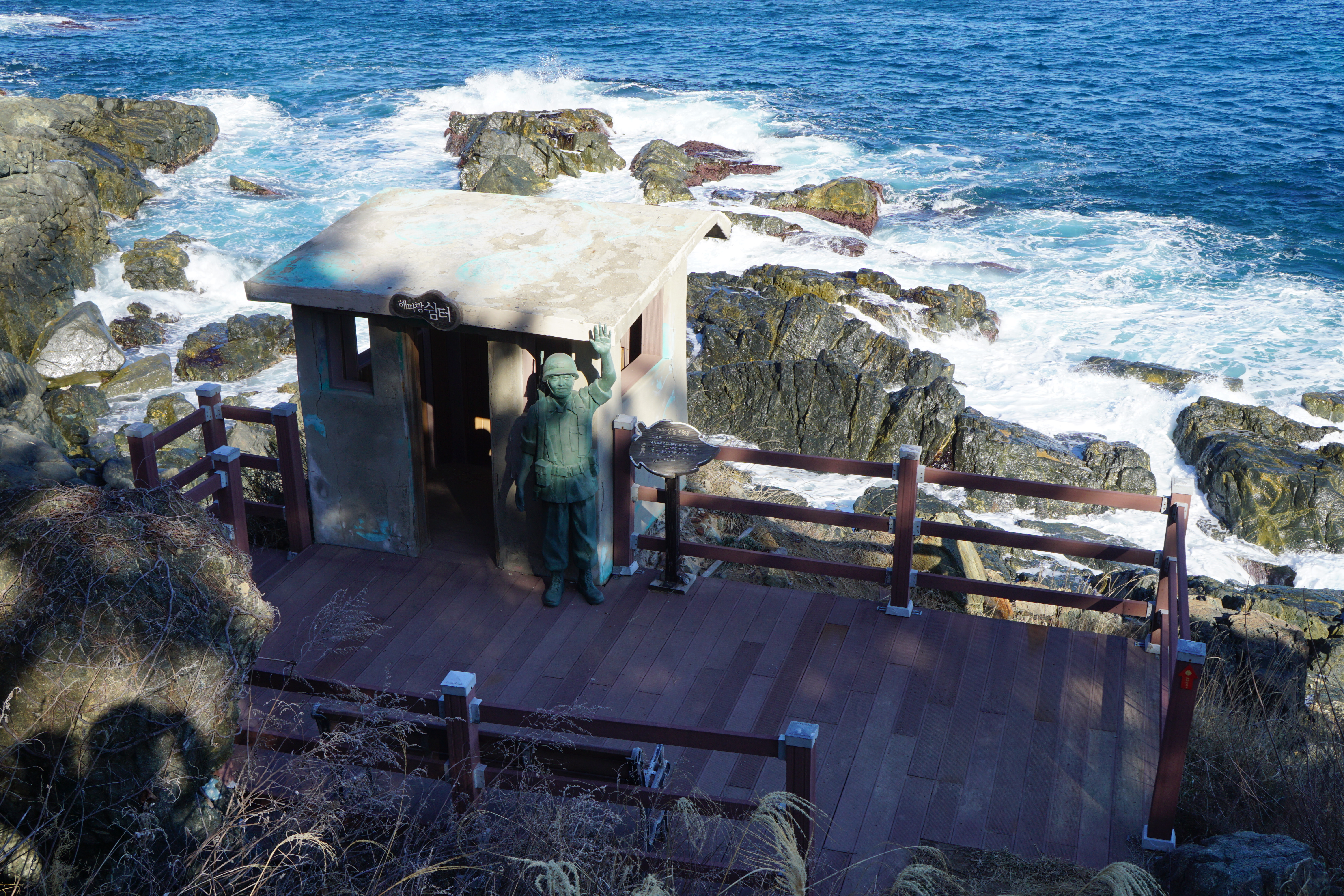 해파랑길을 걸으며 점심을 먹었던 초소의 군인 아저씨가 애처롭게 손을 흔들고 있네...