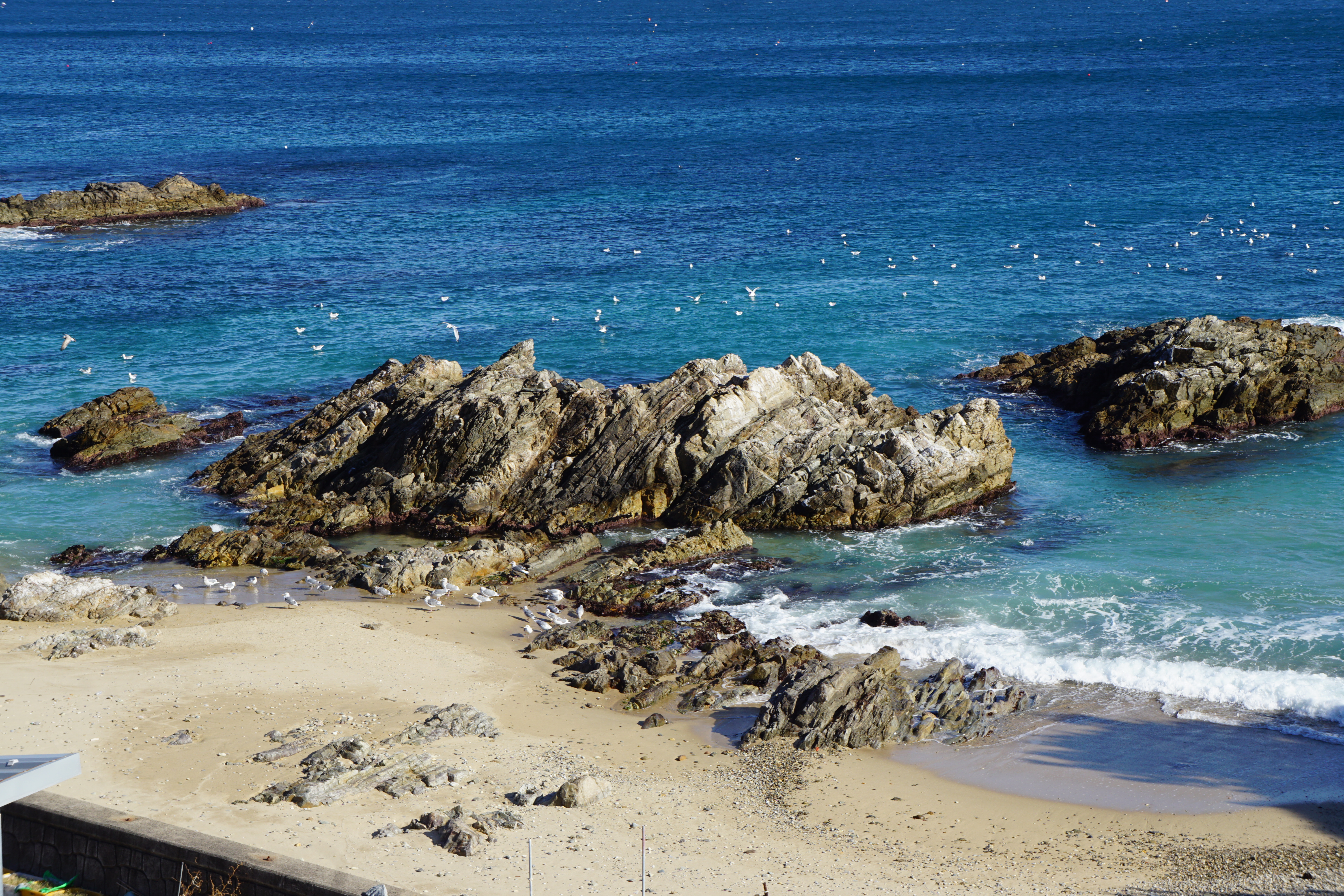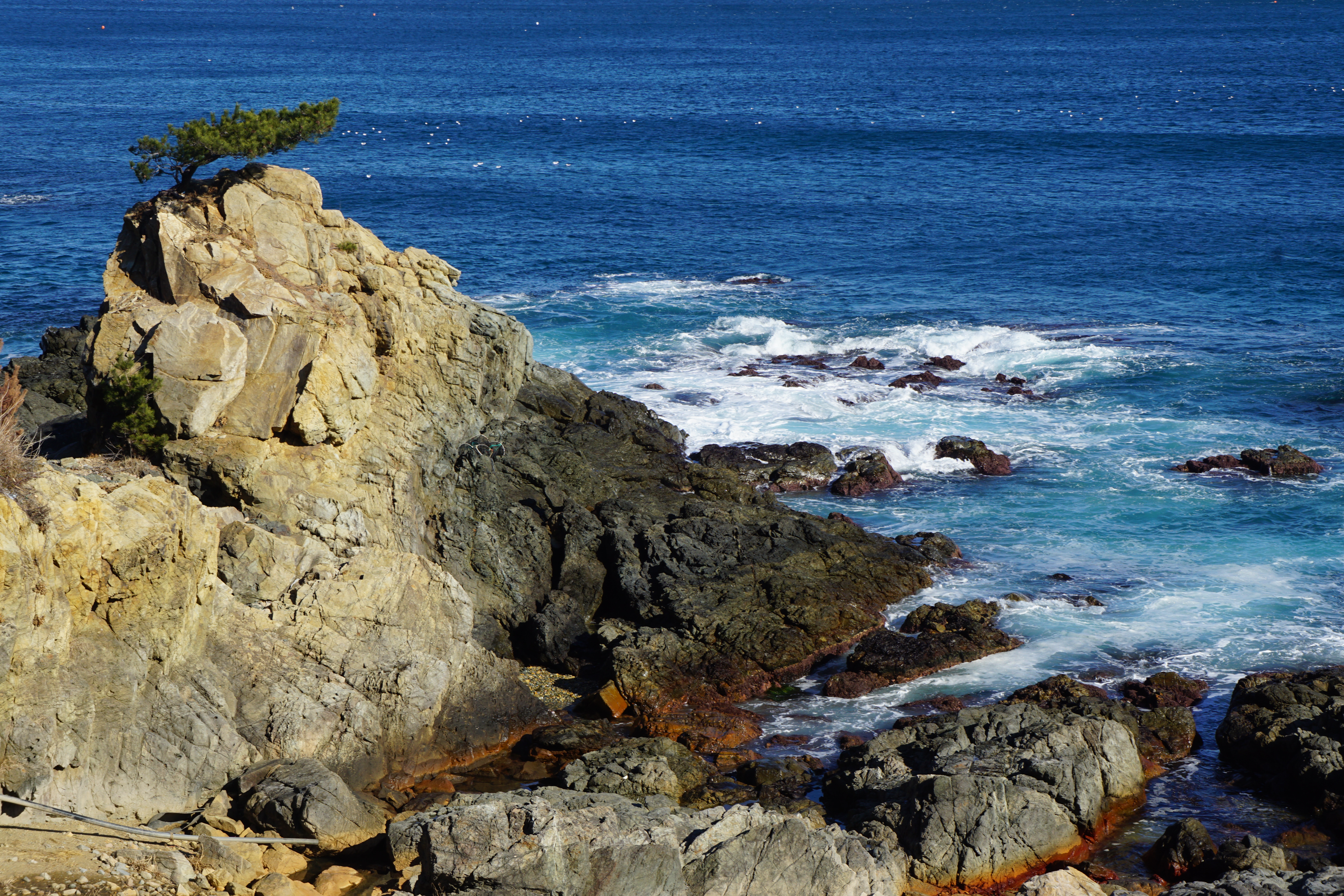 푸른 잉크병이 쏟아진 듯한 검푸른 바다 물빛에 숨이 턱턱 막힌다.
