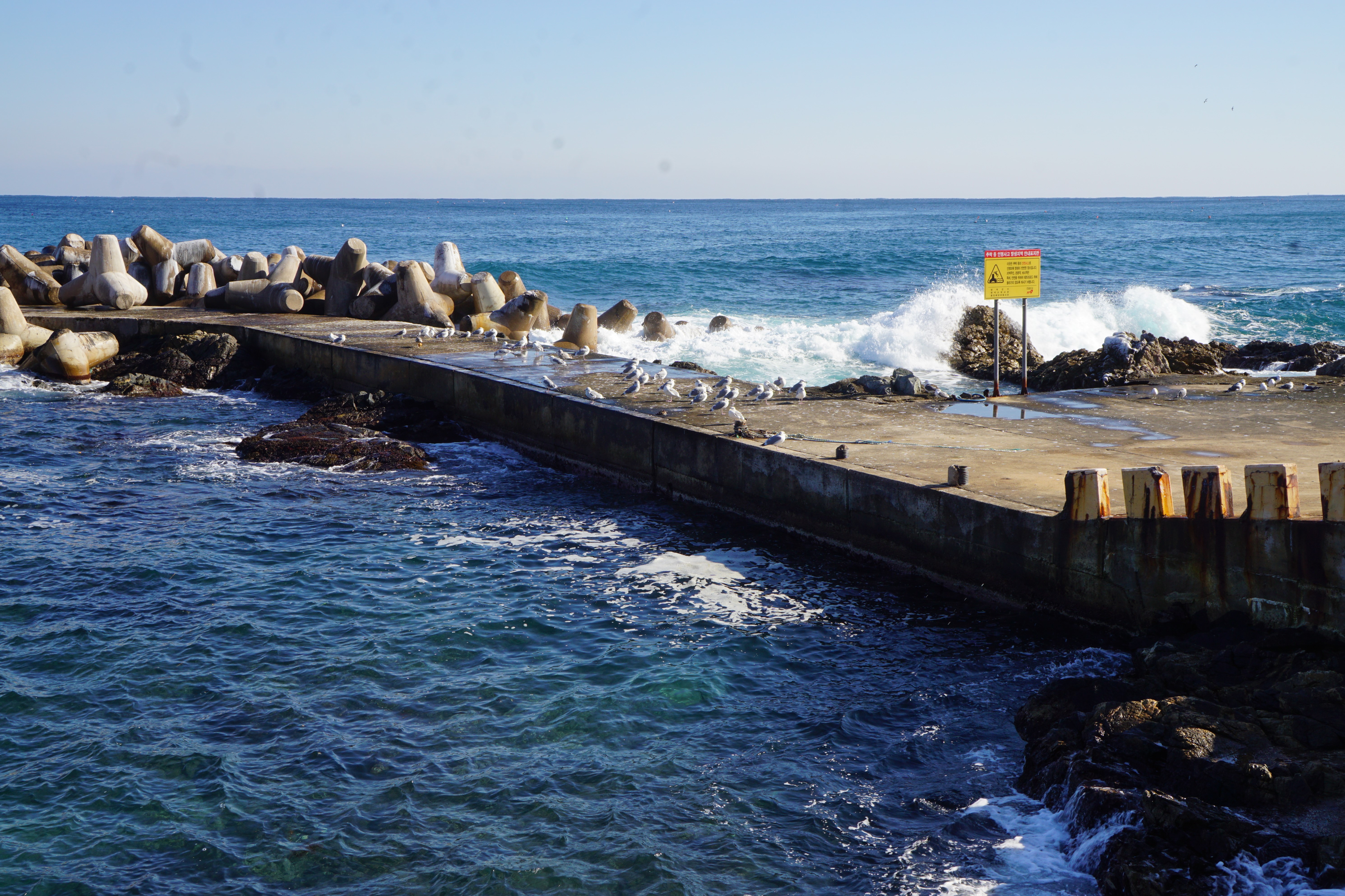 구한말 의병장 벽산 김도현 선생의 순국 정신을 기리기 위해 세워진 '도해단' 이 즈음에 파도가 방파제에 부딪치며 내는 소리가 얼마나 큰지 넋이 나갈 지경이었다.내가 사진을 찍으려고 몇 발