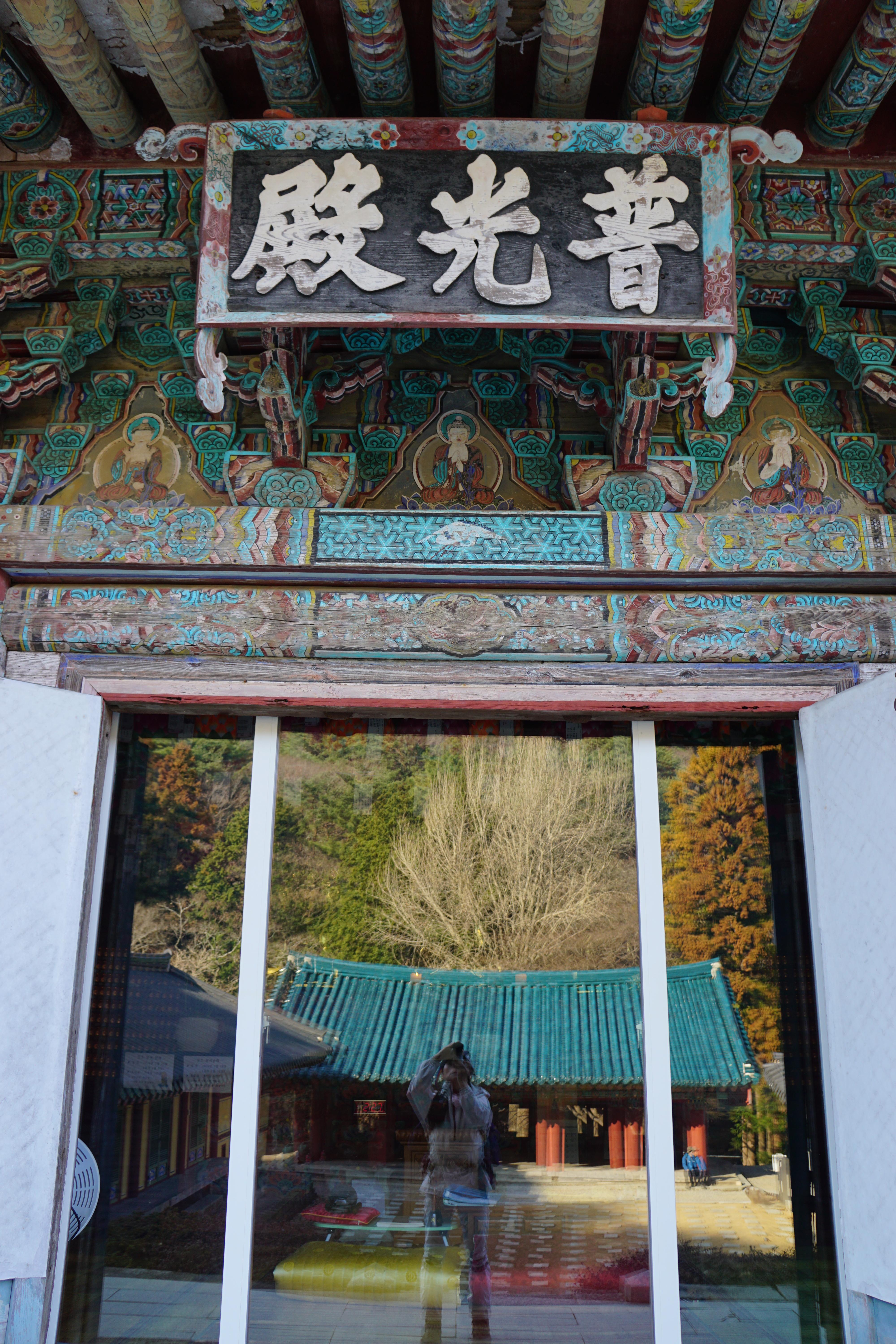 자꾸만 바라 보게되는 '보광전' 어간 유리문에 비친 풍경.