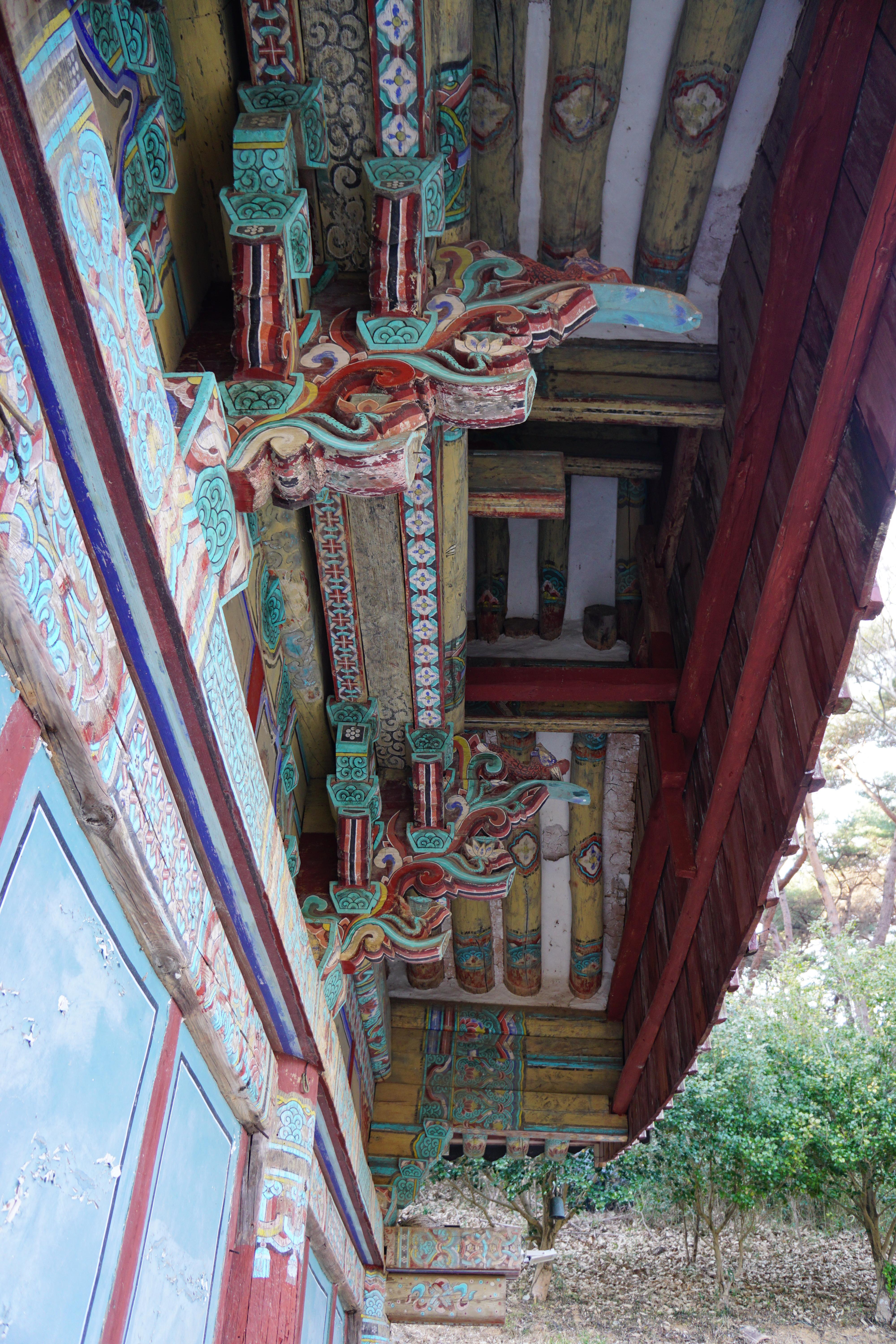 통영이 자랑하는 전혁림 화백이 넋을 잃고 바라봤다는 용화사의 화려한 단청은, 퇴색되어도 여전히 나 하나의 넋 정도는