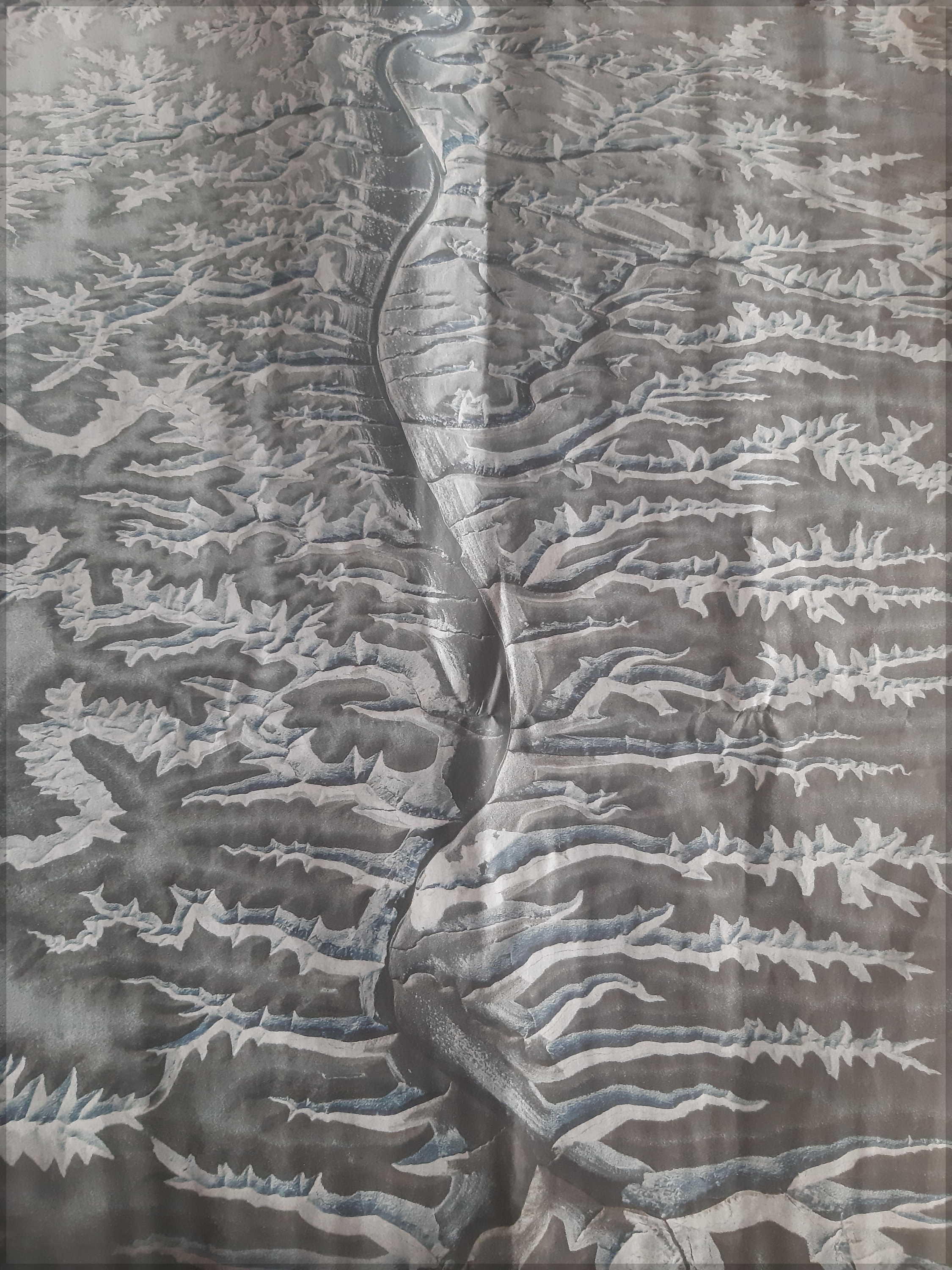 갯벌 위에 남은 수분이 한파로 얼어붙으면서 신비로운 형상을 만들어냈다. 중앙 갯골을 따라 자유자재로 뻗어 나간