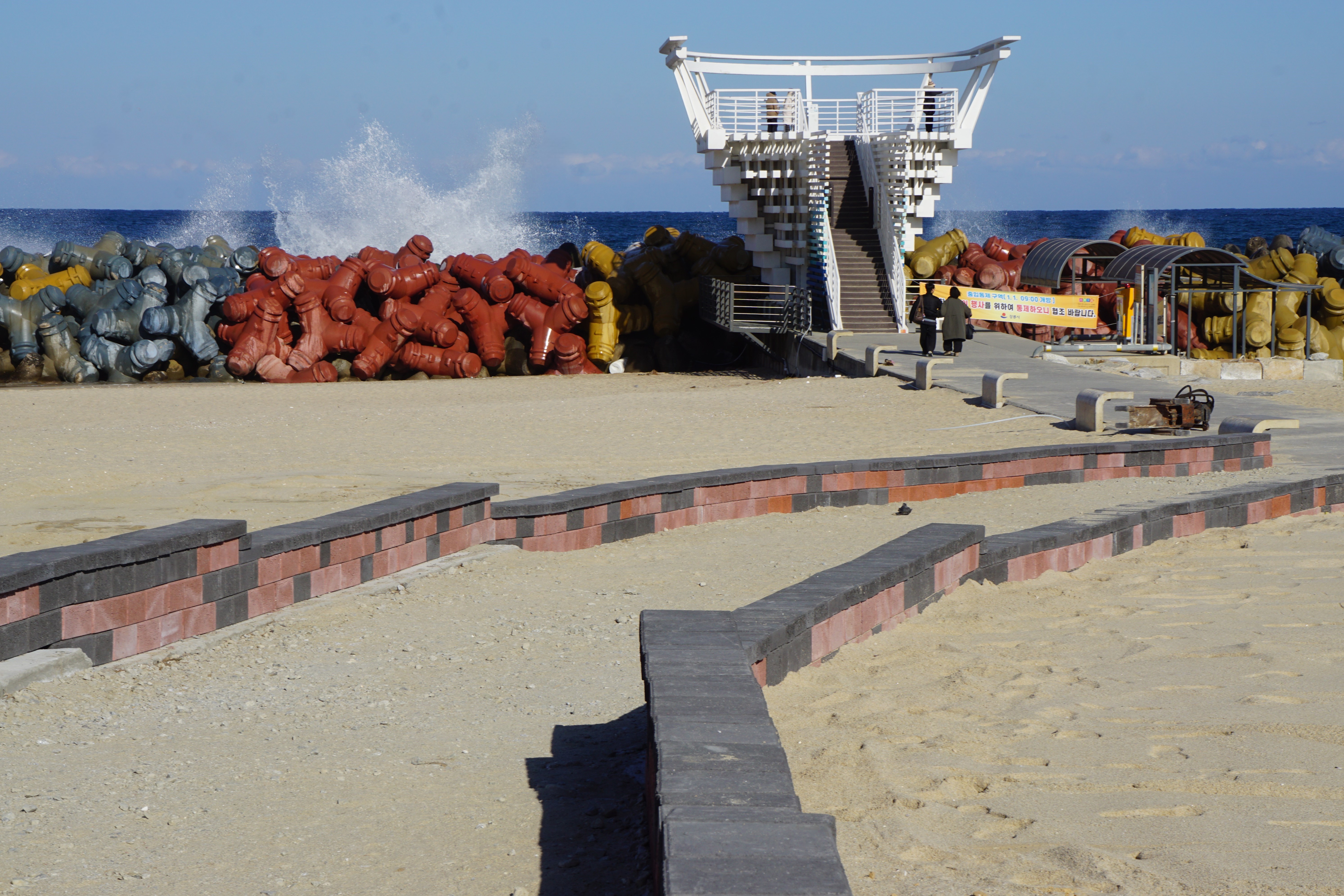 우리는 과감히 한 시간 걸리는 경포호 대신 그대로 해변 길을 걸어 이곳 '경포해변 중앙광장'에서 다시 길 합류한다.