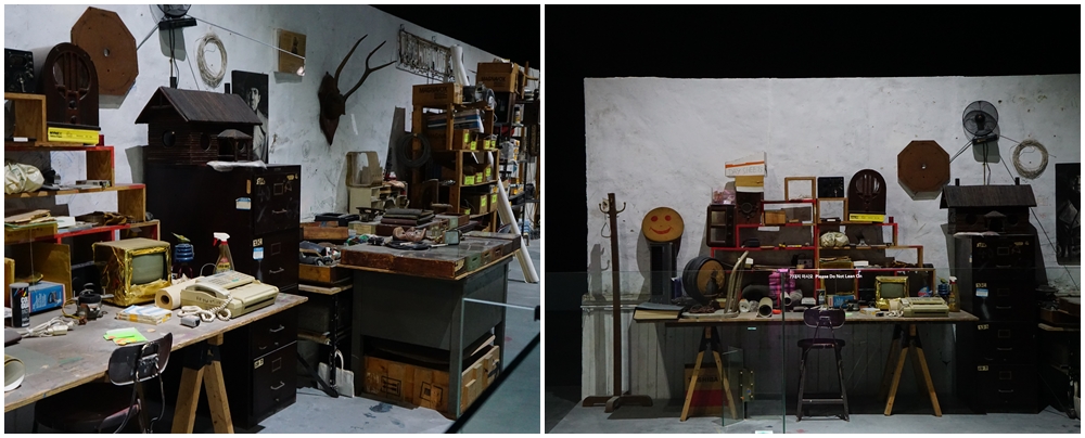 1층 전시실은 공사 중이라 관람할 수 없고, 2층으로 올라가는 엘리베이터 옆 유니크한 인테리어의 카페.