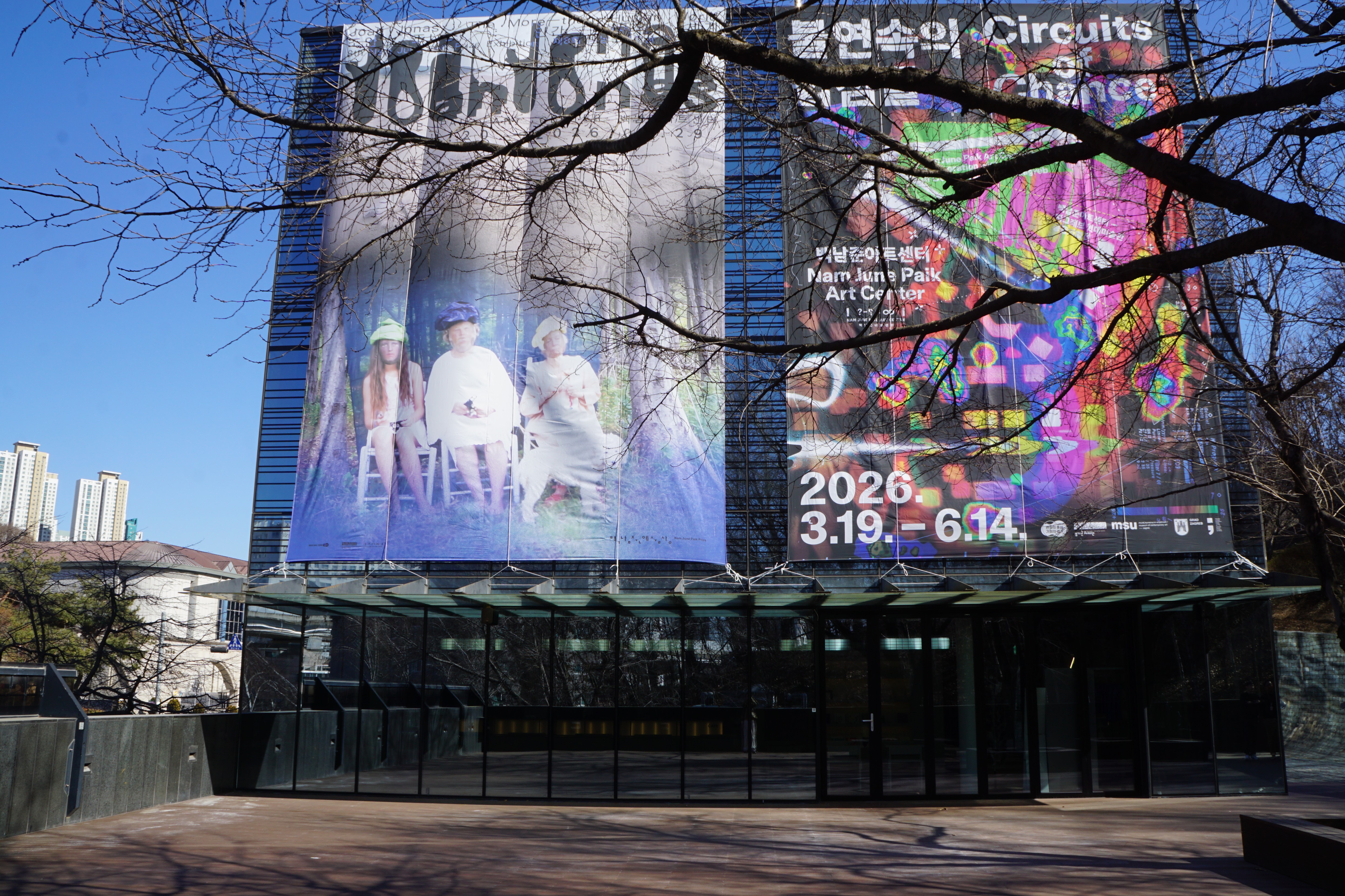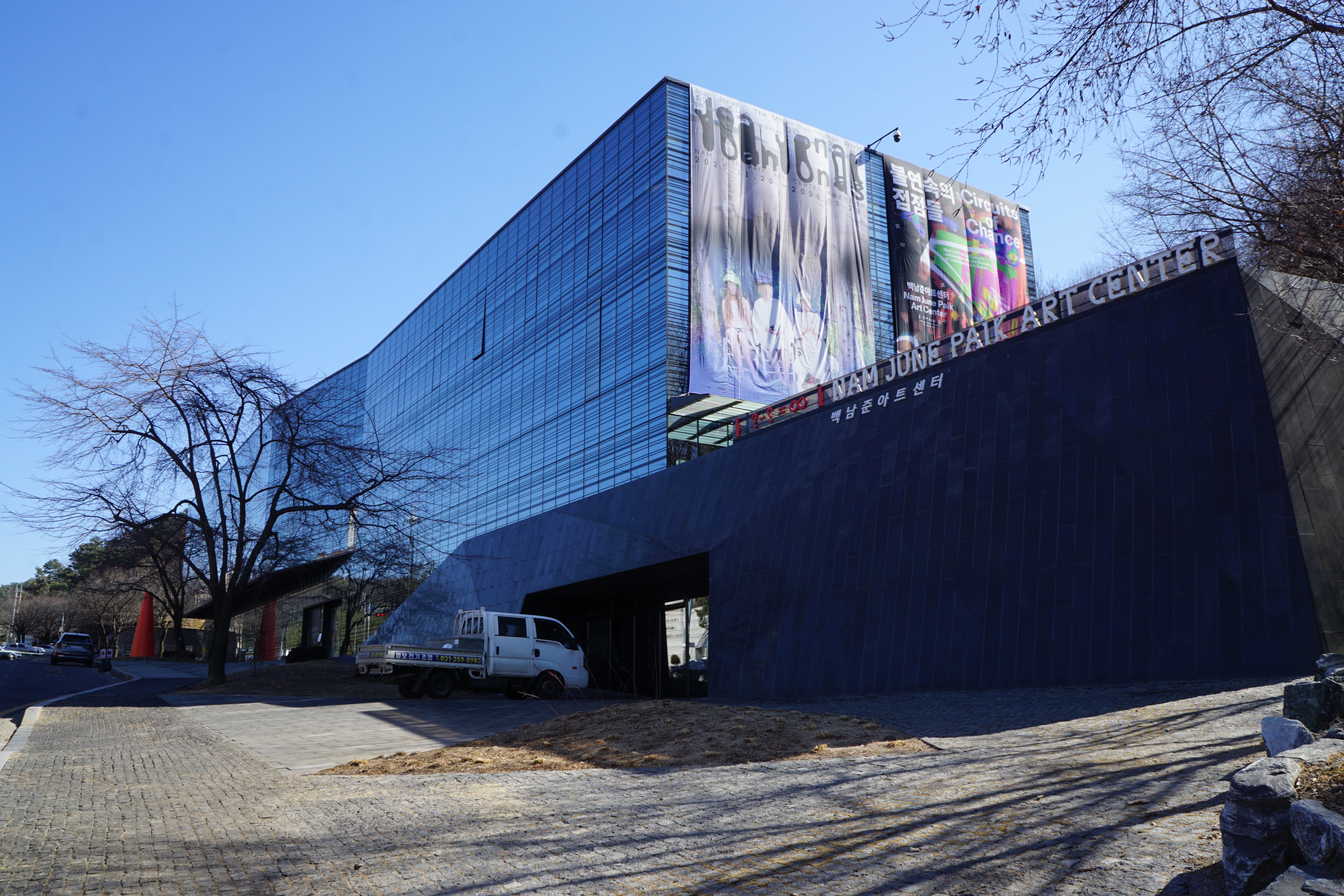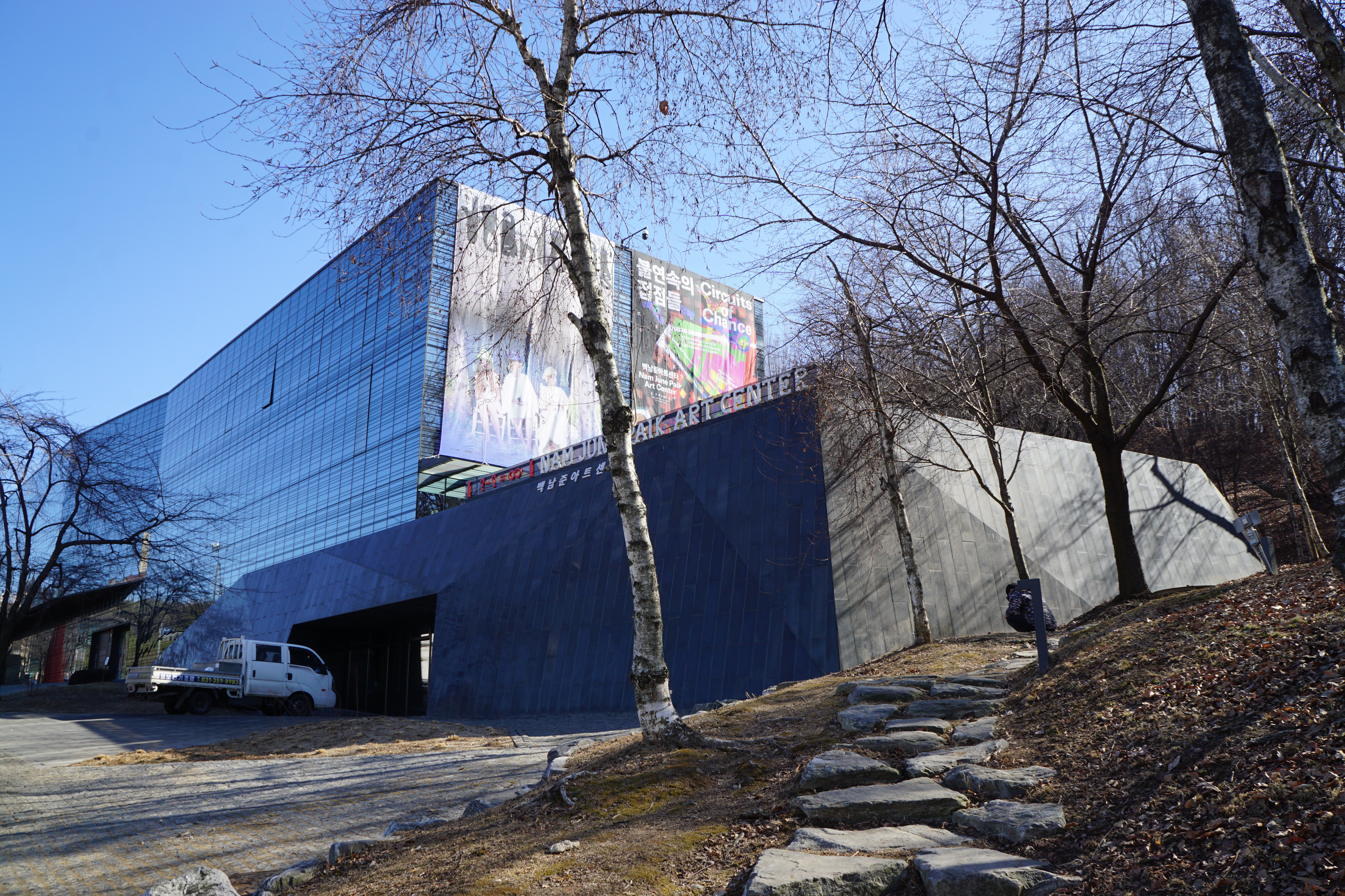 멀리서 봐도 근사해 보이는 백남준 아트센터 건물이 보인다.