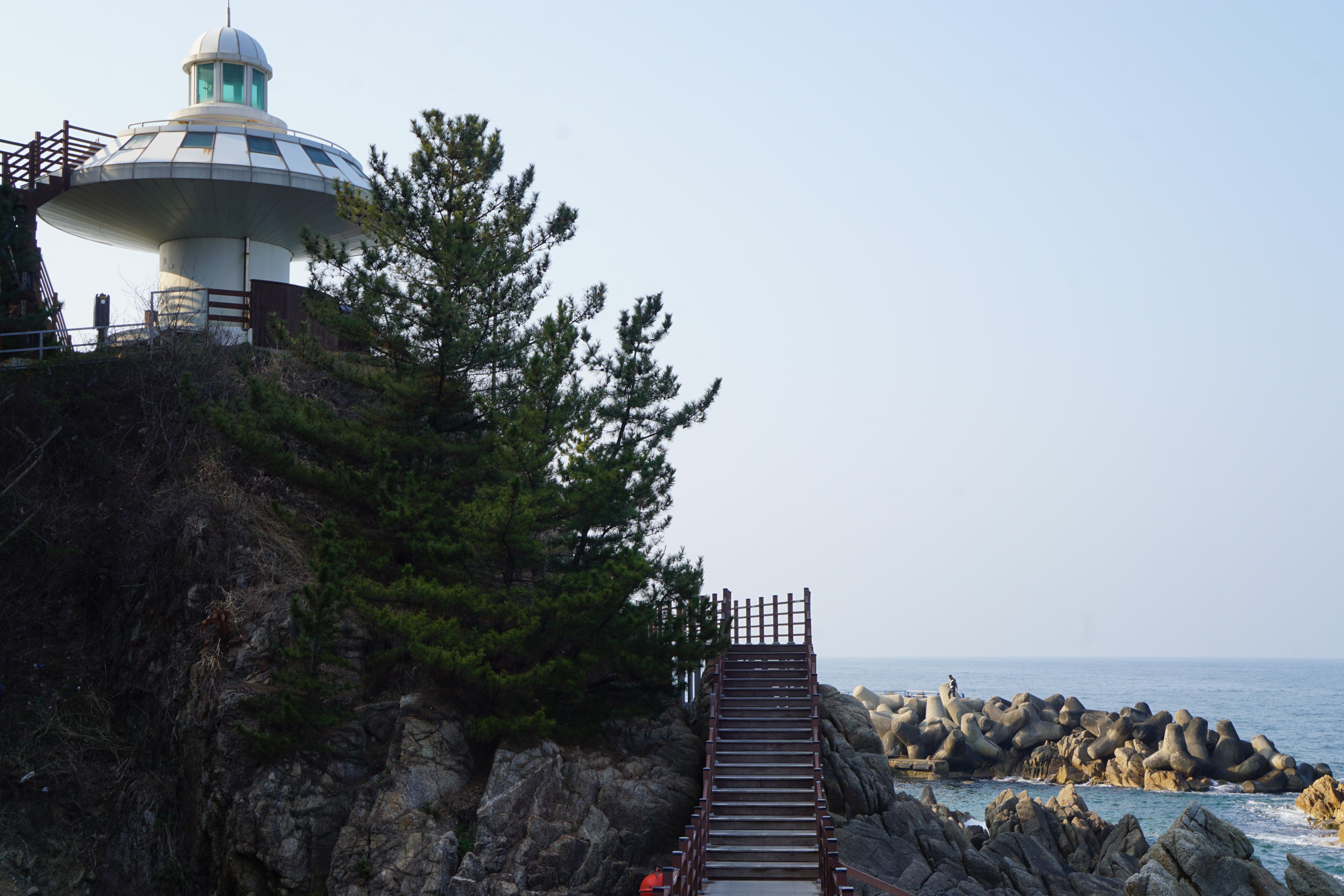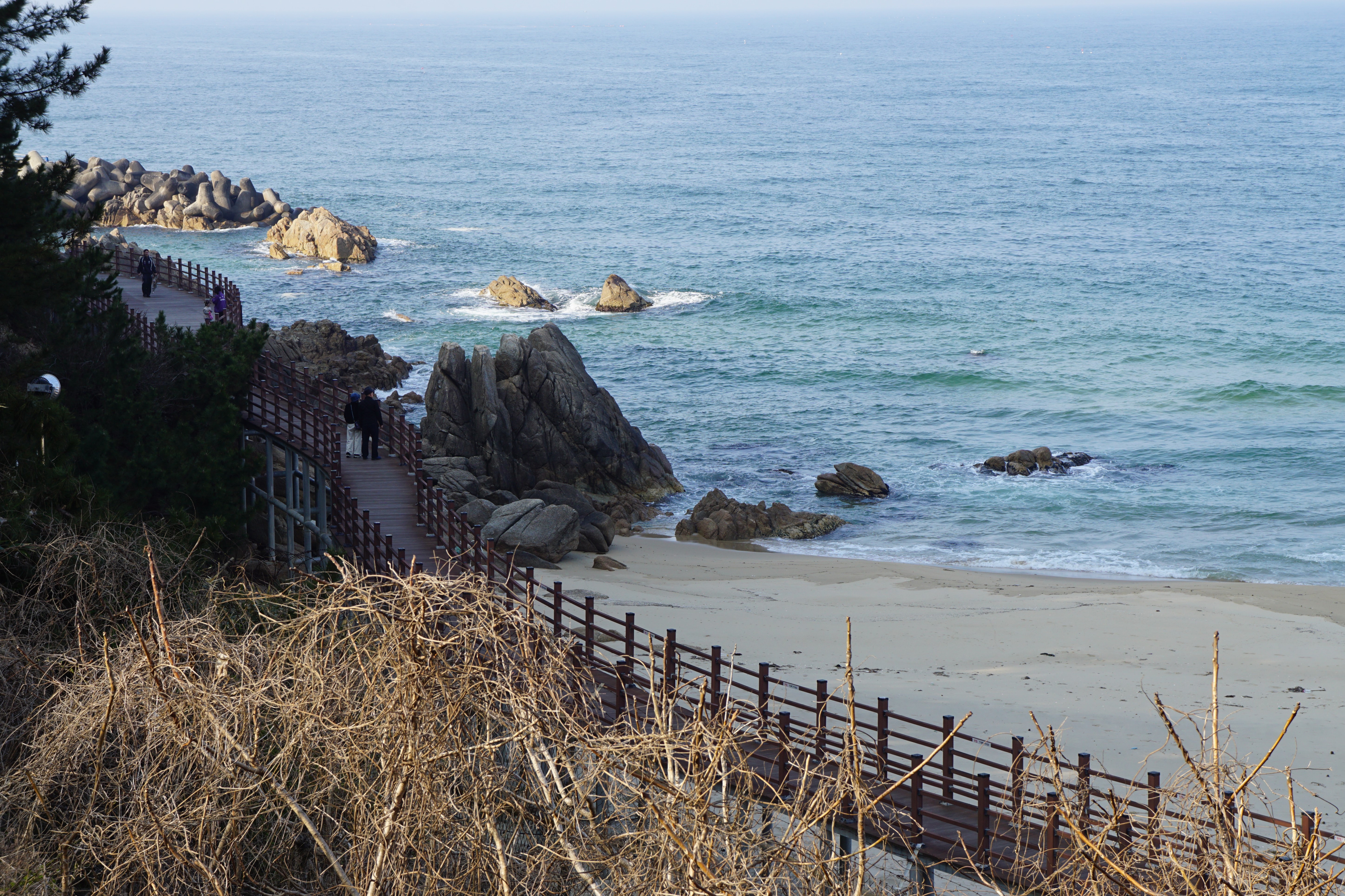 뒷쪽 해변은 데크를 걸어서 전망대까지 가는 하조대둘레길이다.