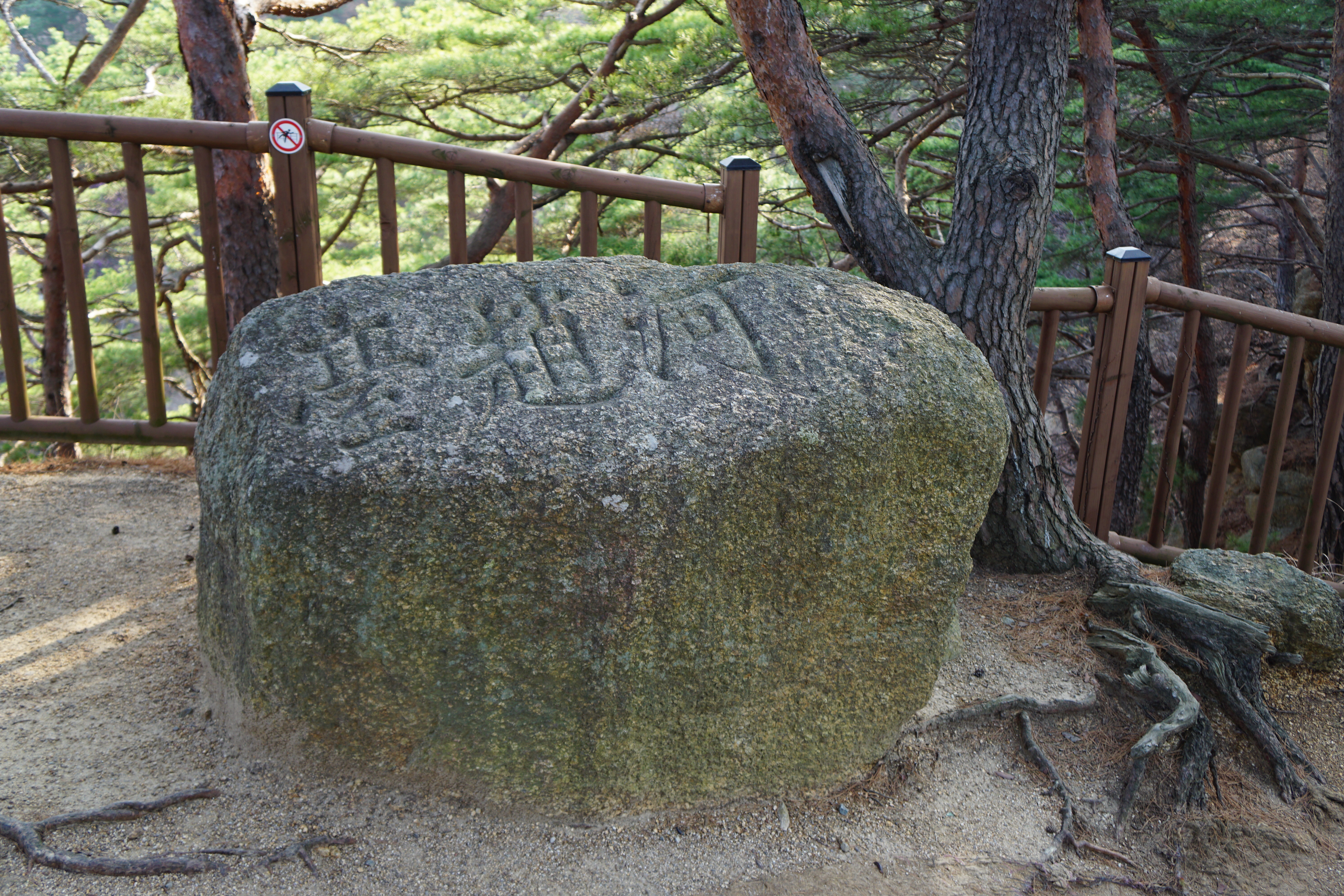 정자 바로 아래 기암괴석을 의지해서 살아가고 있는 250년 된 소나무.