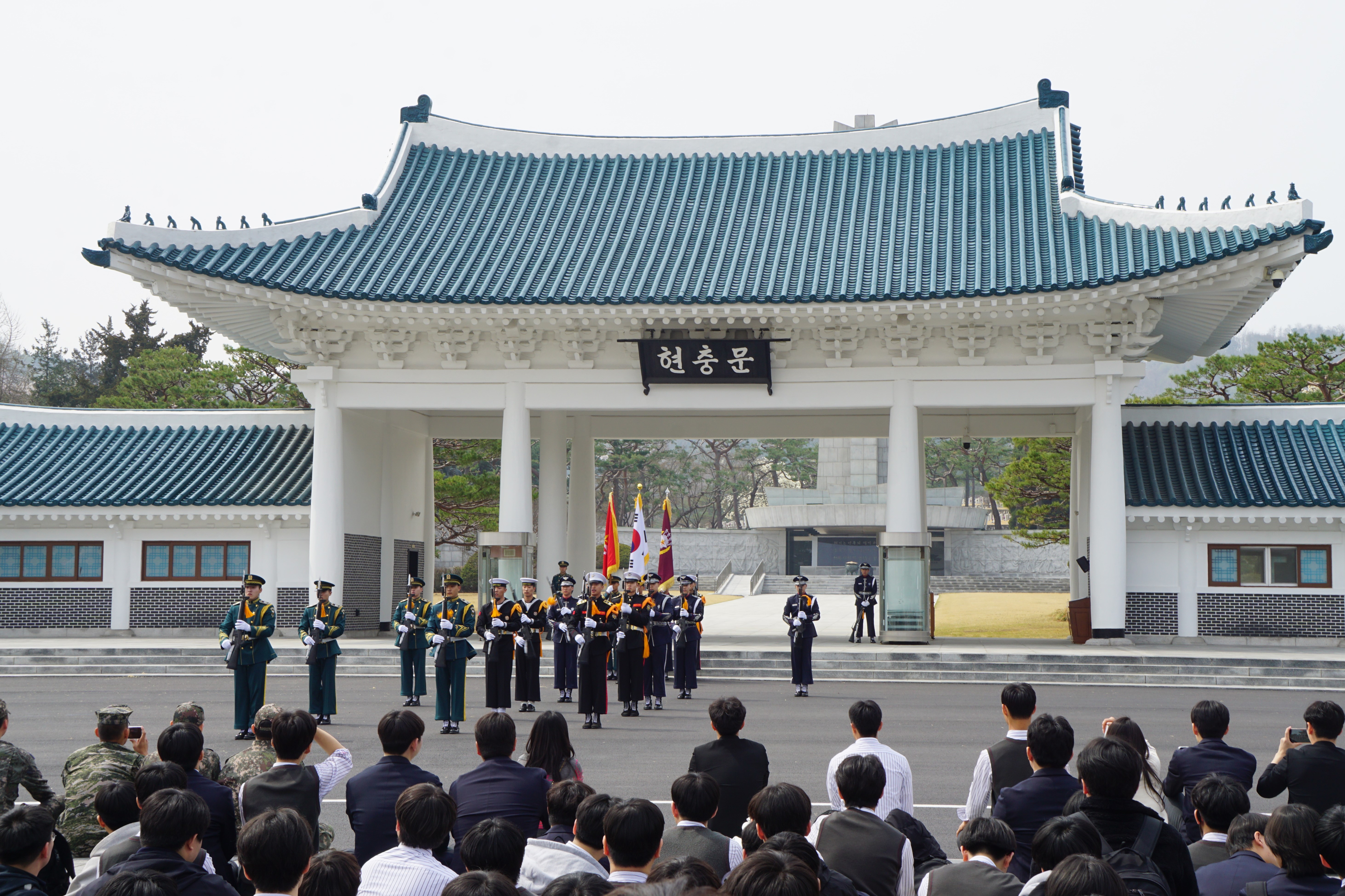 때마침 현충문 앞 광장에서 의장대 시범행사가 있어서 지나치지 못하고 가까이 가서 잠시 구경했다.